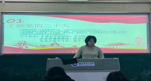 活动伊始,主持人介绍比赛意义和比赛要求。赛中,选手们以激情饱满的态度、昂扬向上的精神、流畅的表达和铿锵有力的声音,以“深入宣传党的二十大报告及其精神实质,弘扬习近平新时代中国特色社会主义思想,引导党团和群众在新时代的奋斗中凝聚共识、激发动力”为主题,进行演讲。各宣讲人通过视频呈现、PPT展示、案例对比讲解等丰富多彩的形式进行演讲,运用问答互动、背景音乐配合等巧妙的设计调动观众的积极性,现场时不时响起热烈的掌声。他们的宣讲或朴素平实、发自肺腑;或澎湃激昂、扣人心弦;或热情洋溢、感情真挚,将核心内容聚而精、简而清地展现出来,使在场观众产生了情感共鸣。