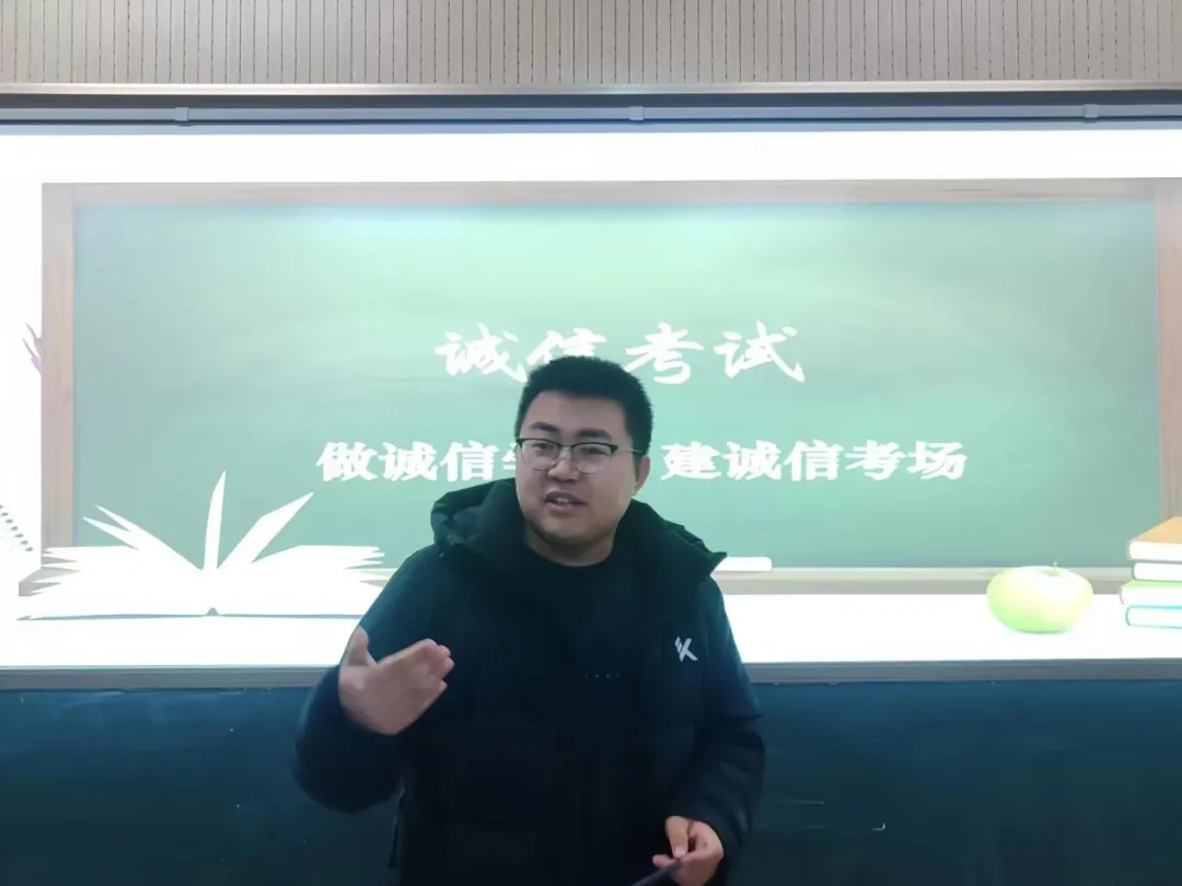 会议上,贝思雨老师要求全体同学必须做到诚信应考,杜绝考试作弊现象发生。贝老师结合实际案例讲述了考试作弊的严重后果,并带领学生学习了考试违规违纪相关处理办法,切实提高学生遵守考试纪律的自觉性,并针对缓考、补考等情况做出具体说明。同时,督促各班学生干部传达此次会议精神,回到班级后和同学们指明诚信考试的重要性,鼓励同学们调整心态、努力备考。会议结束后,参会的所有同学签署了《考试诚信承诺书》,彰显了以诚待试、端正考风的决心。