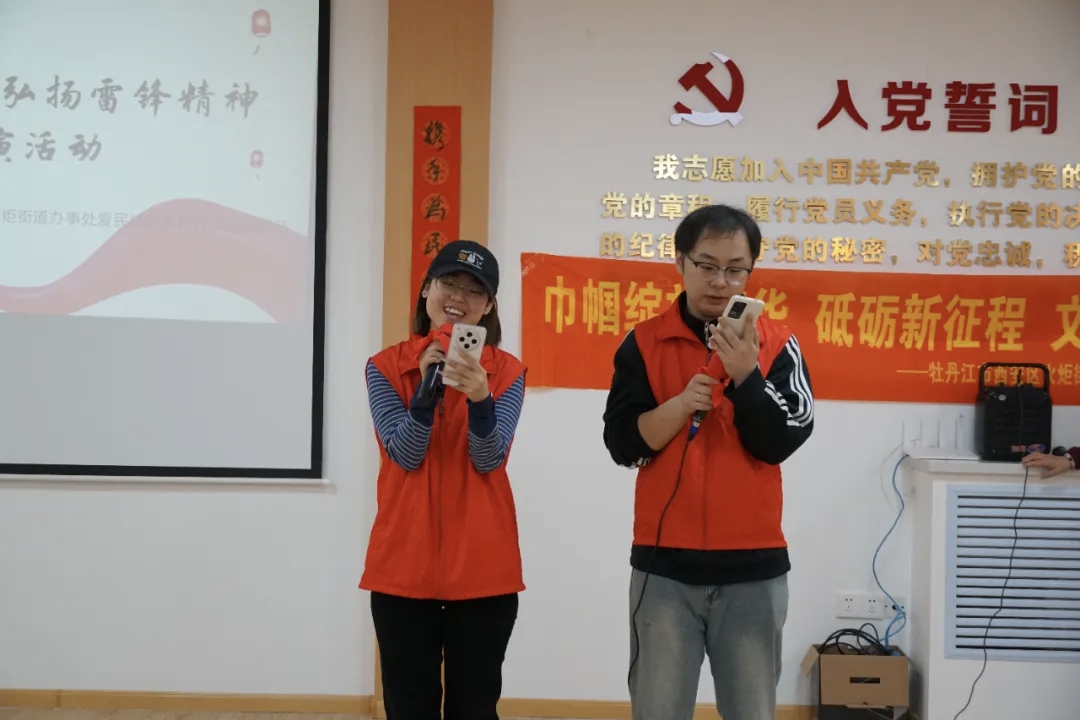 2. 声临其境:文苑连心志愿者创新编排诗朗诵《三月,为雷锋绽放》,运用多媒体技术打造时空对话场景;