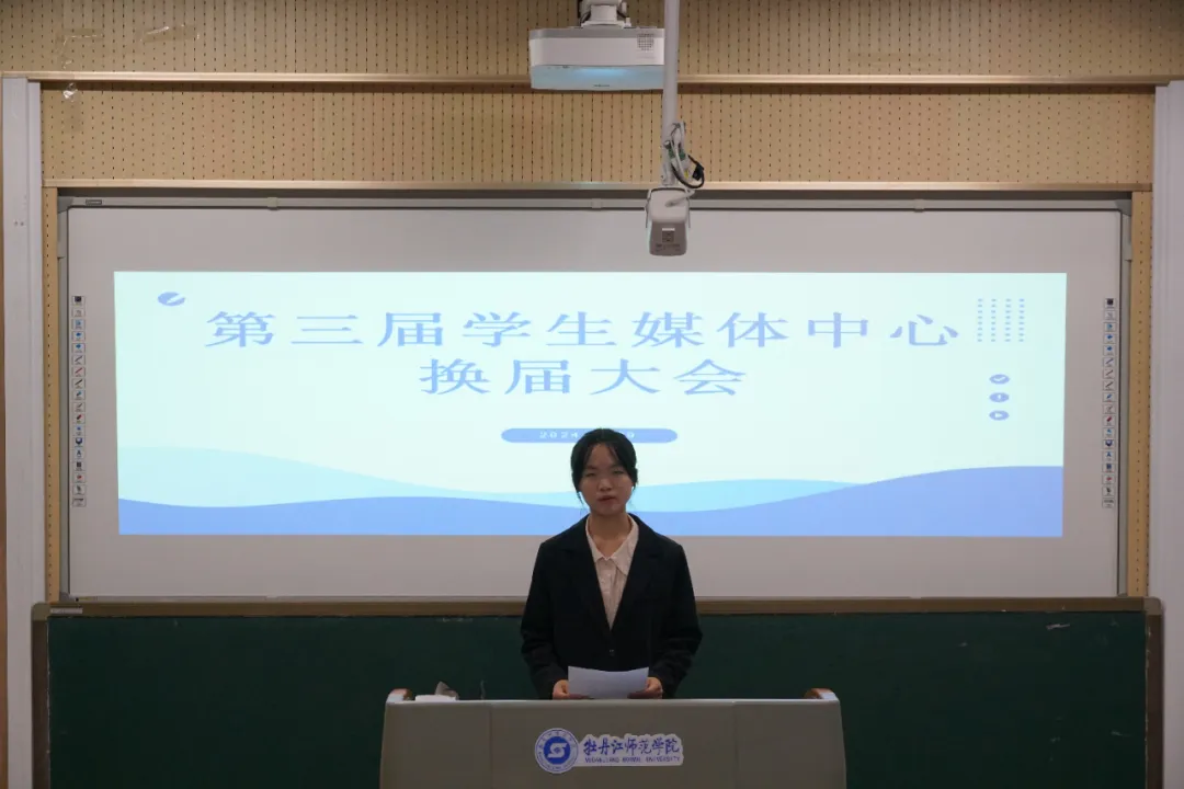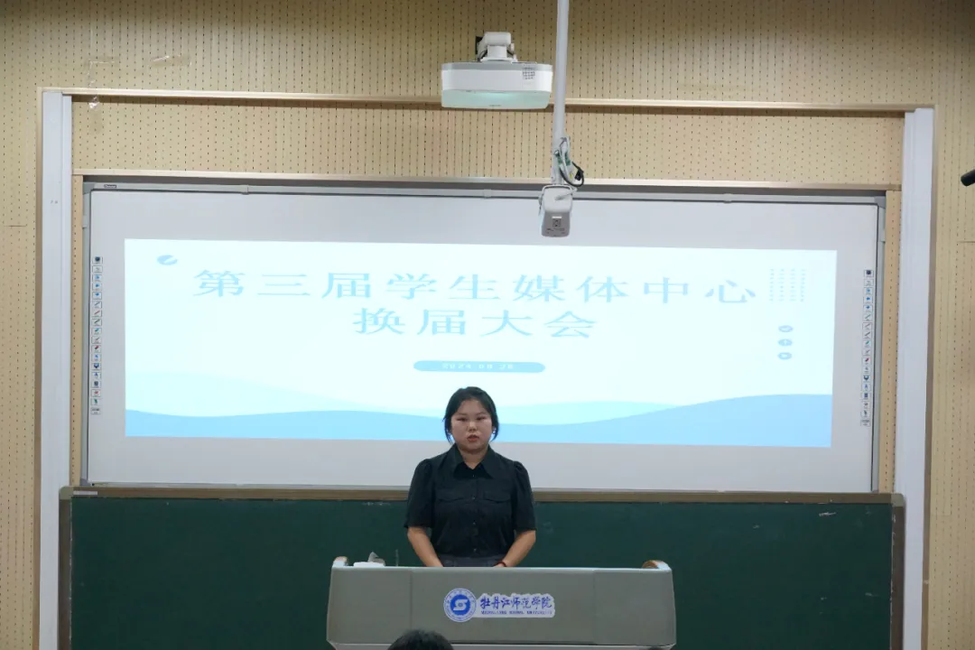 会议第三项议程,第三届学生媒体中心候选人进行竞选演讲。演讲内容主要从自我介绍、竞聘意向、竞聘优势、工作规划四个方面展开,充分展示了自己的才能与潜力,以及乐于奉献、服务同学、共创辉煌的决心与担当