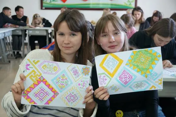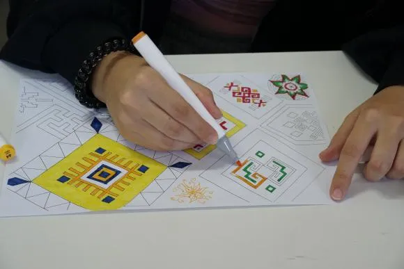 在“传声筒”环节,壮锦相关的小知识在耳语间传递,偶尔出现的“可爱偏差”引来阵阵欢笑,大家在轻松氛围中加深了对非遗文化的印象;“我为壮锦来上色”游戏中,留学生们纷纷执笔,以多元色彩为传统纹样注入新活力,每一幅作品都成为跨文化碰撞的独特见证。