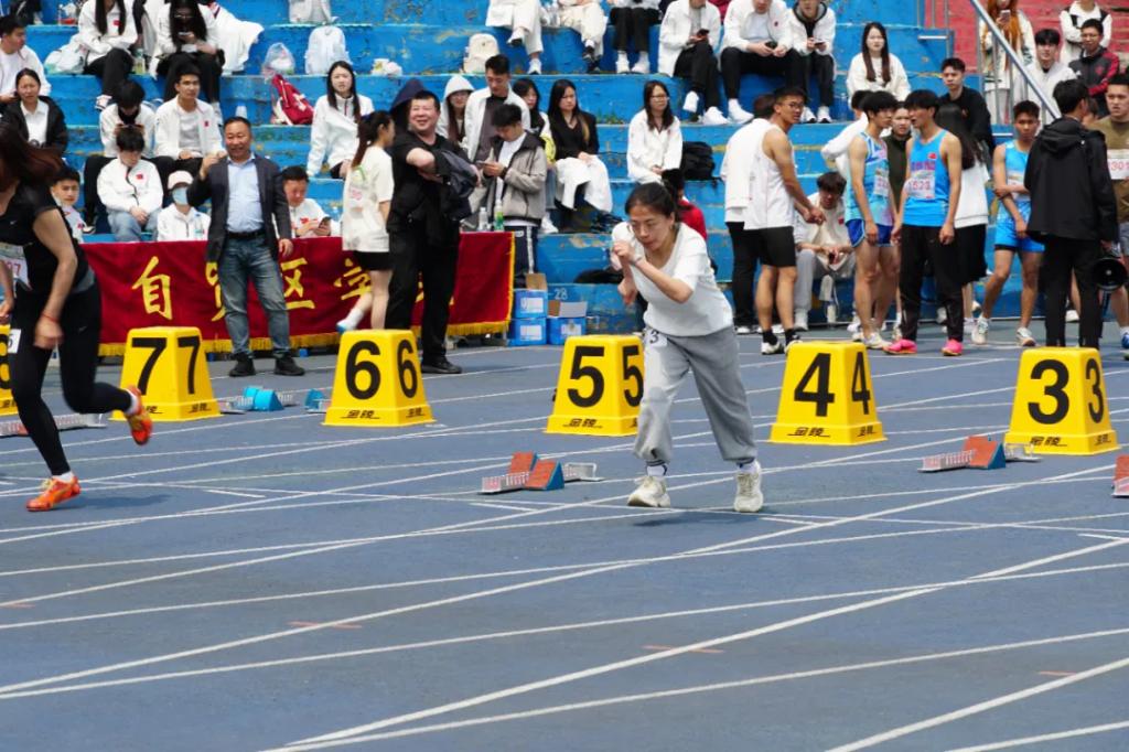 运动健儿在跑道上挥洒热情